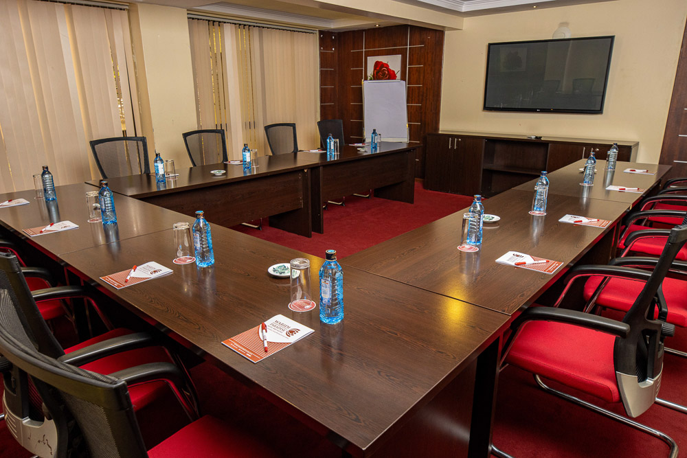 * Boardroom: A sleek and professional setup ideal for executive meetings, interviews, or presentations. The boardroom layout promotes focus and effective communication, with a central table arrangement for up to 20 participants.